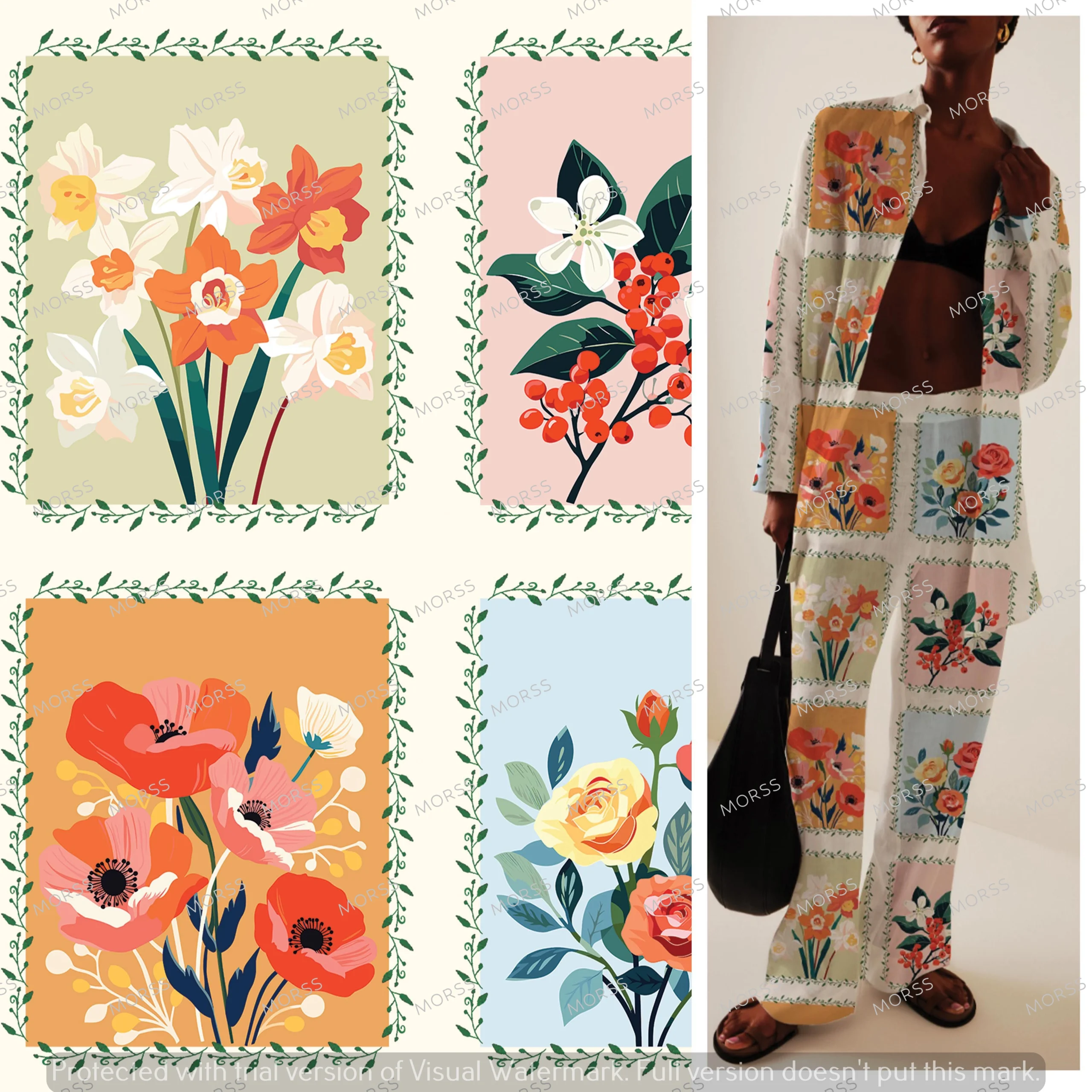 ✅Patchwork florals with elegant leafy frames