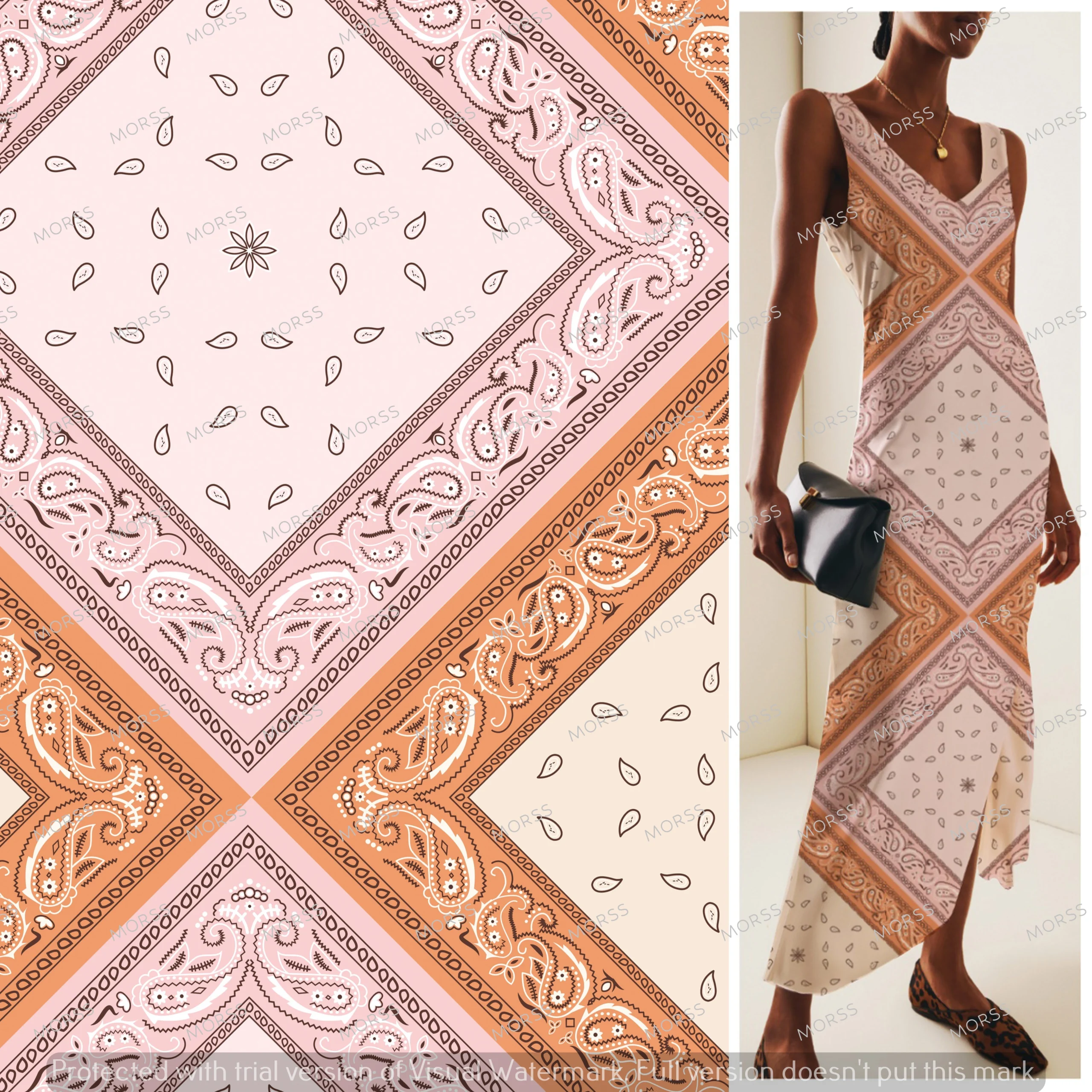 Your brand becomes the sole owner of this Peach Bandana print. We remove it from our library after purchase, ensuring zero duplication in the market.